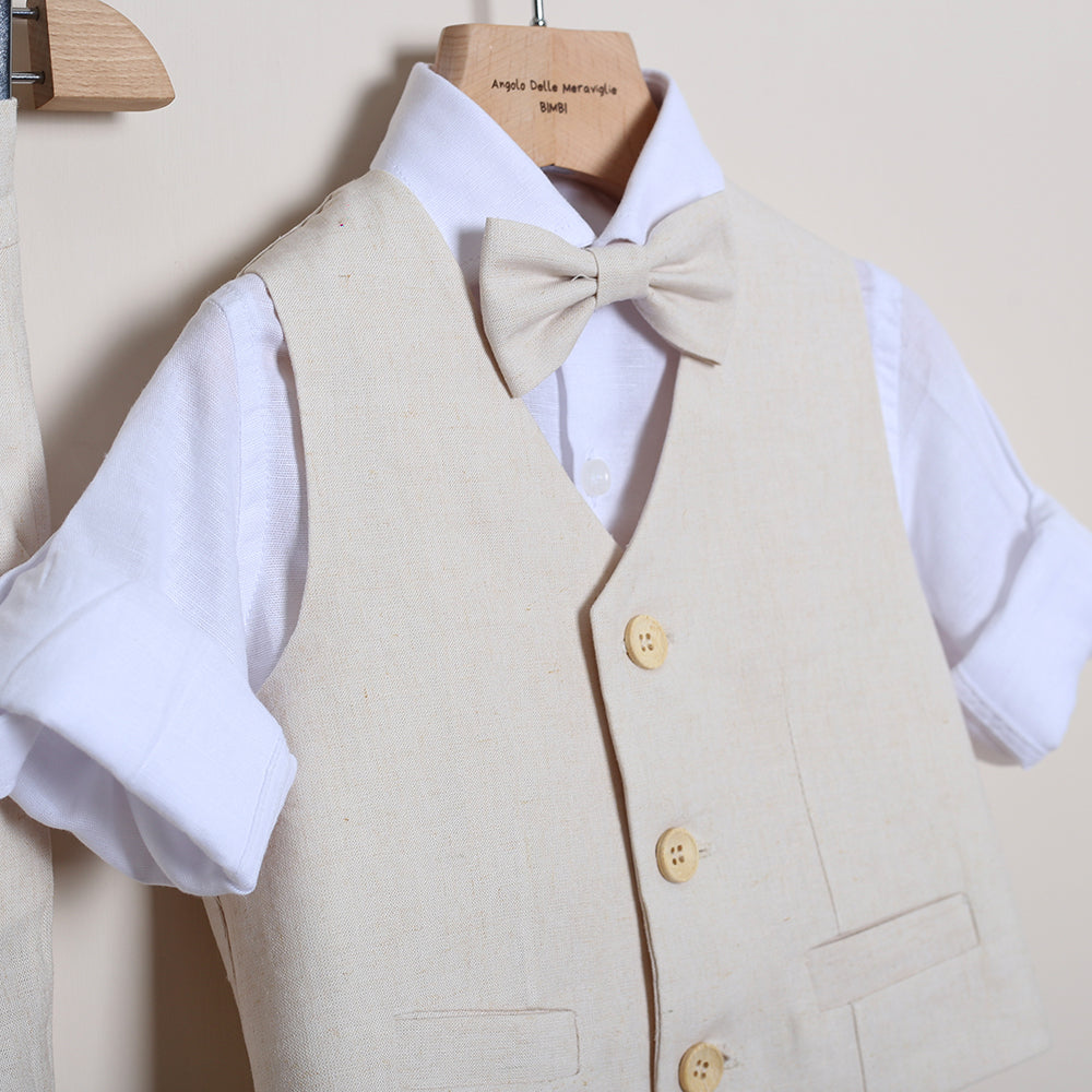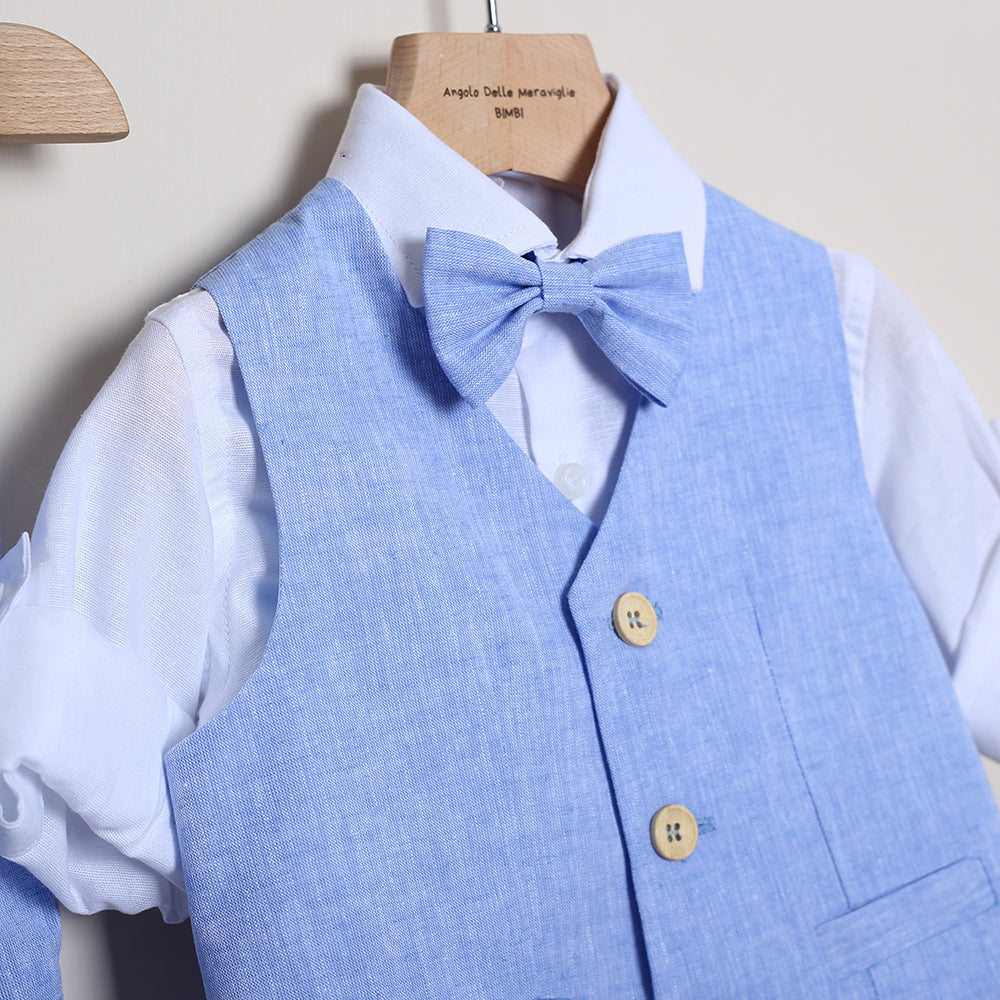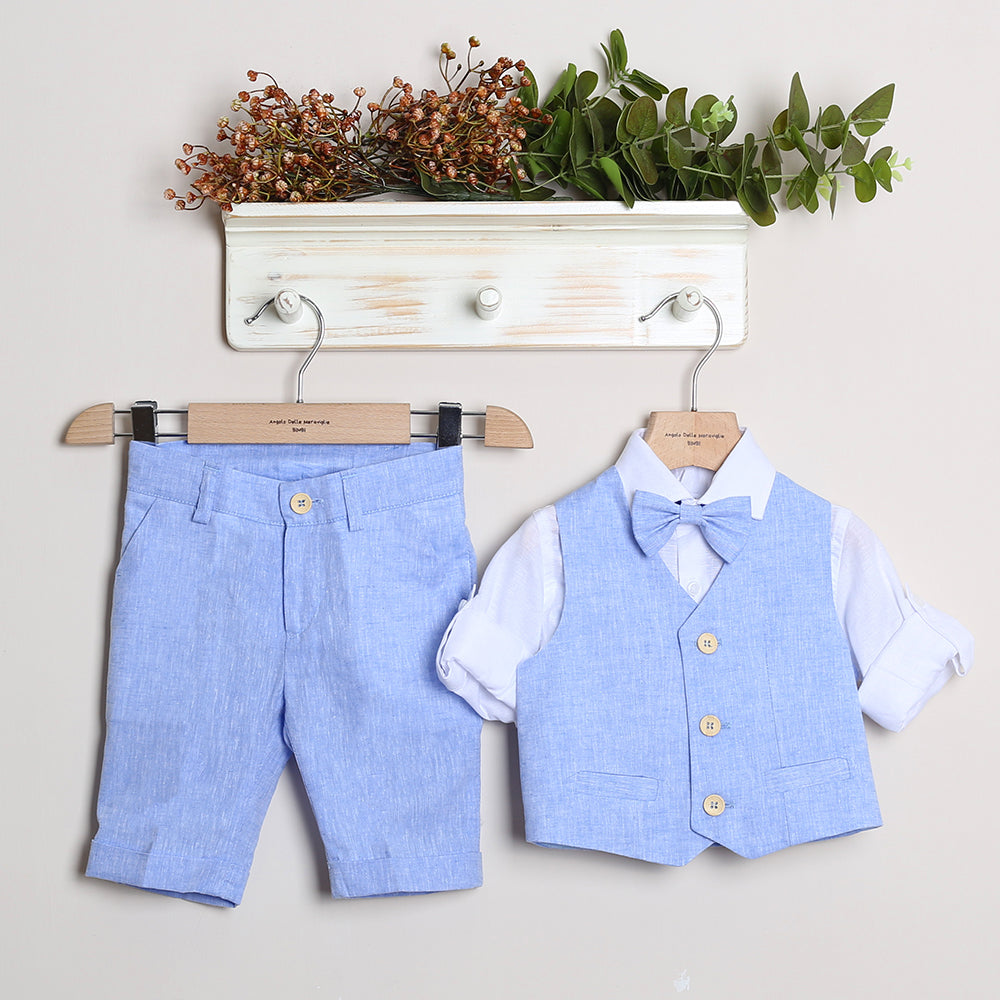 Completo Elegante Con Bermuda+Camicia+Gilet+Papillon