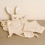 Doudou coniglietto con gioco e bavetta