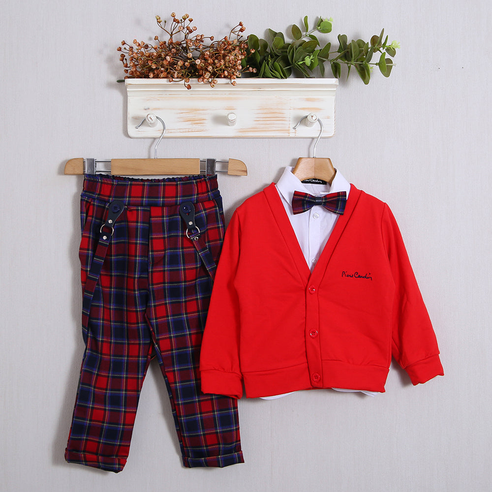 Eleganter „Pierre Cardin“-Anzug (Hose+Hemd+Strickjacke+Fliege)