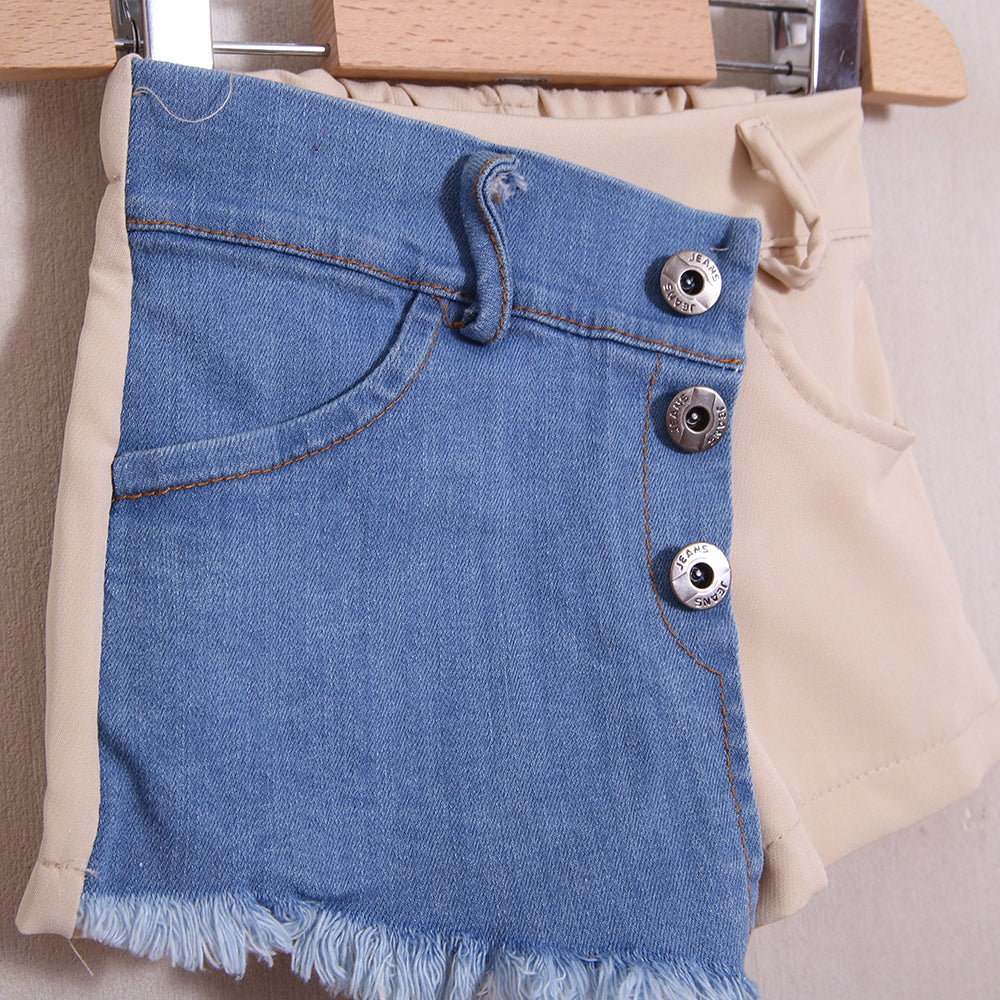 Zweifarbige Jeansshorts
