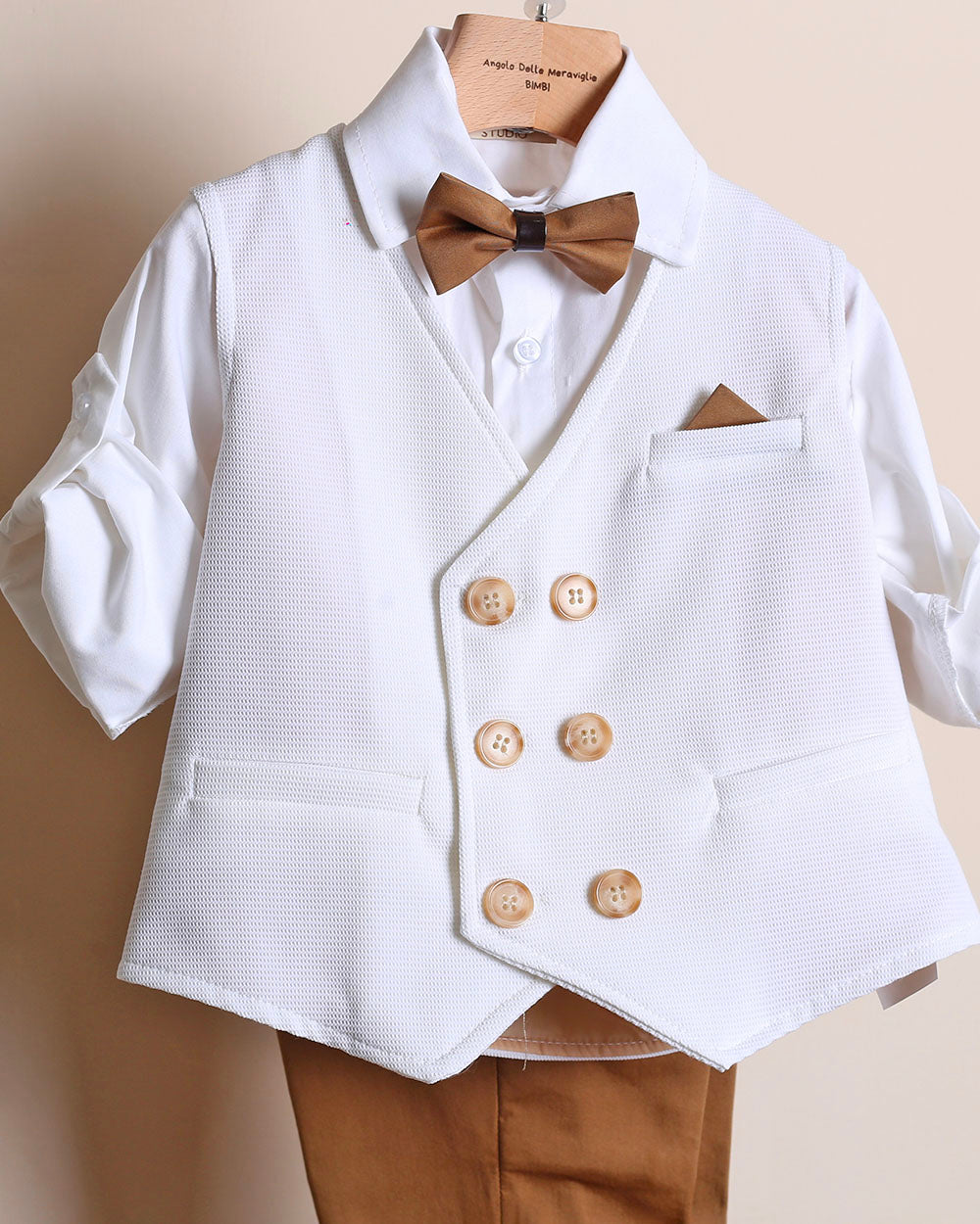 Completo Elegante Con Gilet+Pantalone+Camicia+Papillon