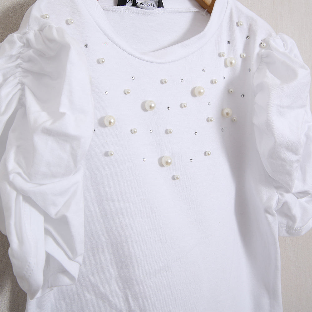 T-Shirt mit Puffärmeln und Applikationen